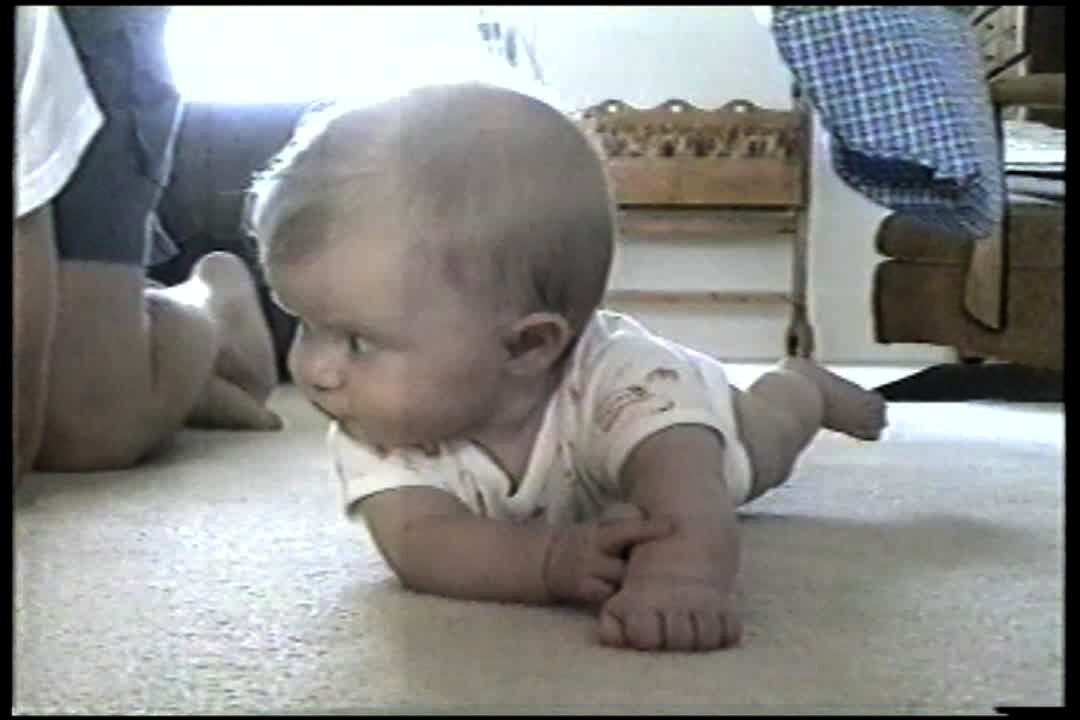 baby girl cralws on her back to get around.