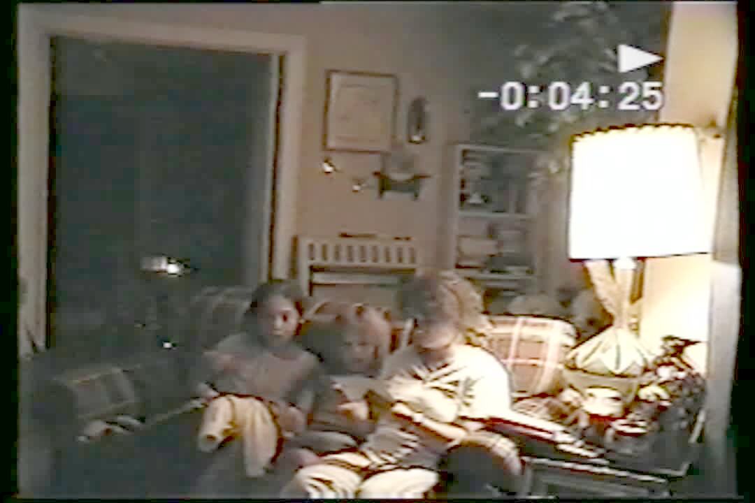 A senior woman sits on a couch in a living room and looks at her phone. A teen girl sneaks in with a whoopie cushion and blows it in the woman's ear and scares her. The senior woman screams in shock and yells, "God Bless America, Libby."