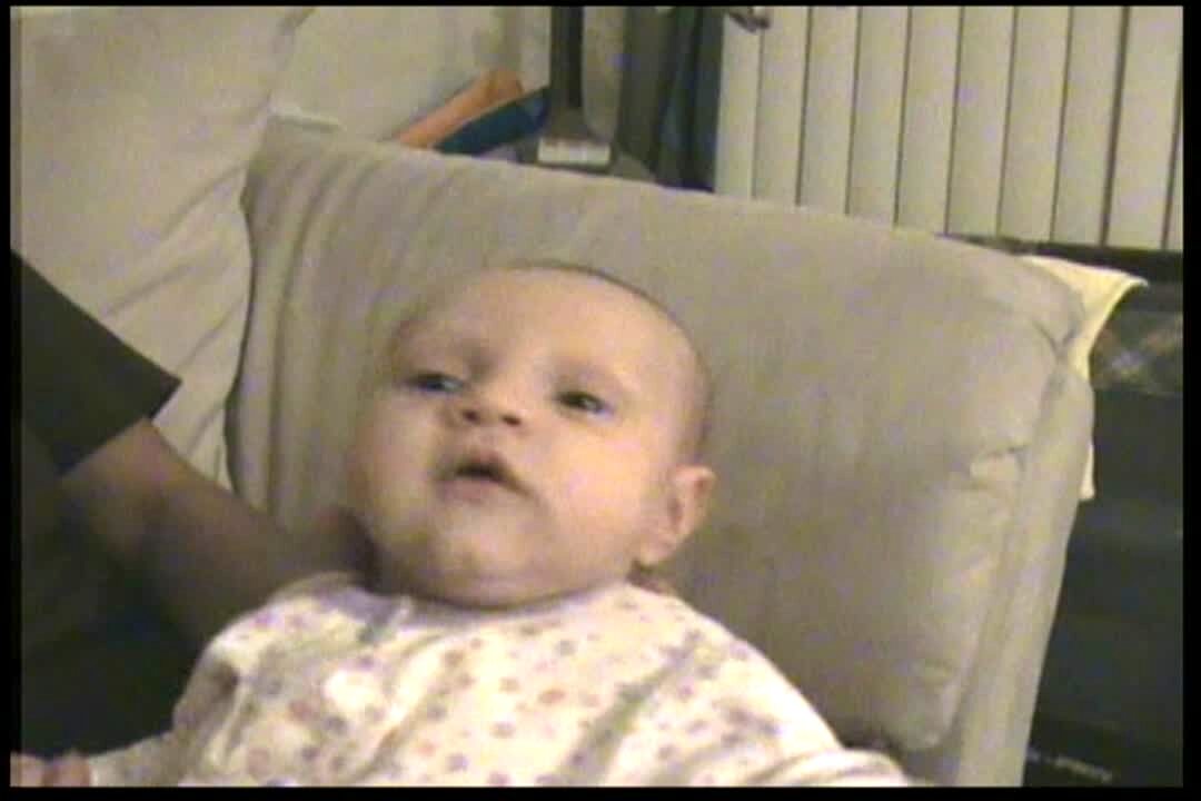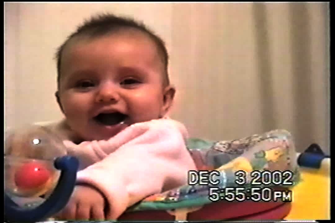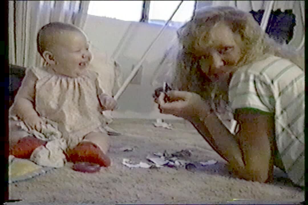 Mom tapes baby girl, wants her to say something. Baby makes a long fart & then smiles.