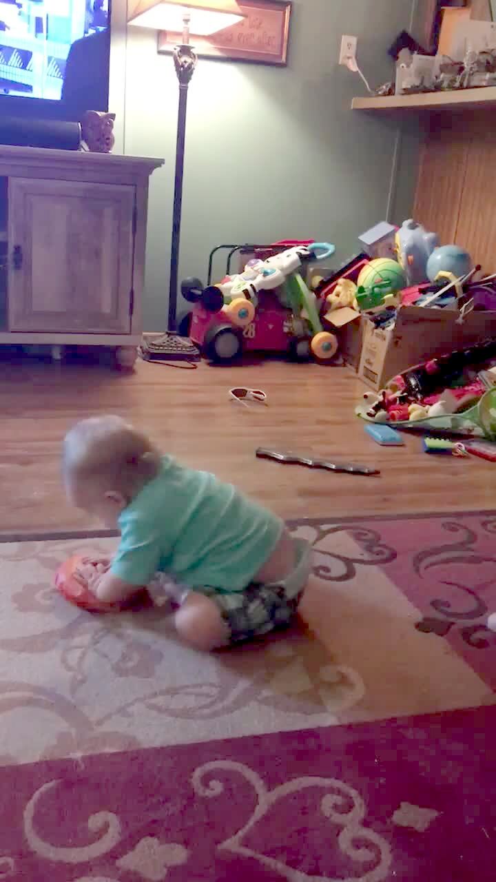 A man records a mess of thin mints in the house. He leads up to a baby with chocolate smears all over her face in the living room.