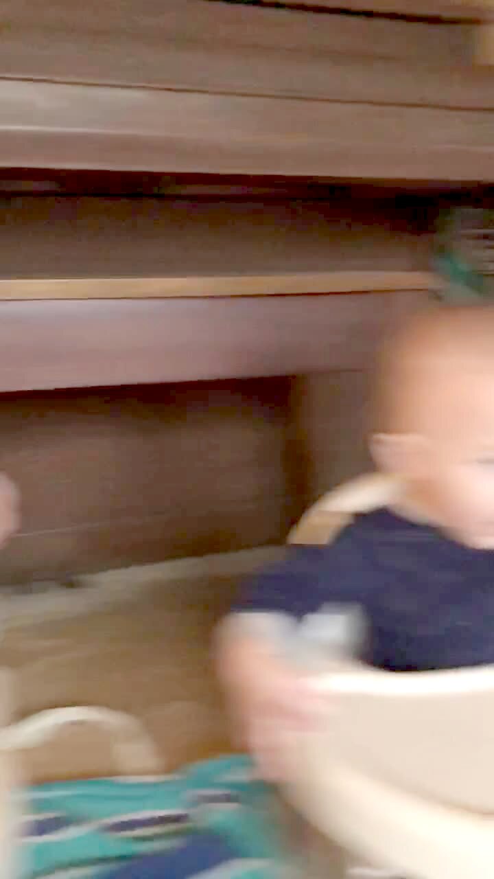 Twin baby boys sit next to each other in booster seats as they babble, "Ahh" repeatedly.