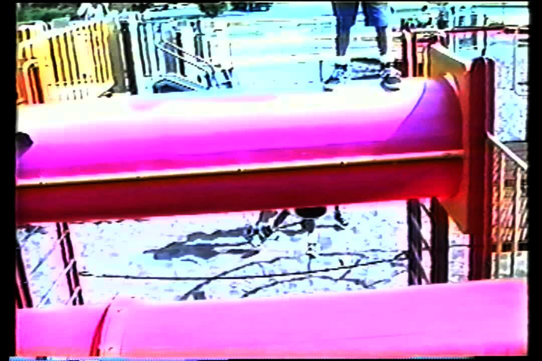 2 boys jump from 1 side of playground to other. Another boy tries, misses, hits tube, goes flying backwards.