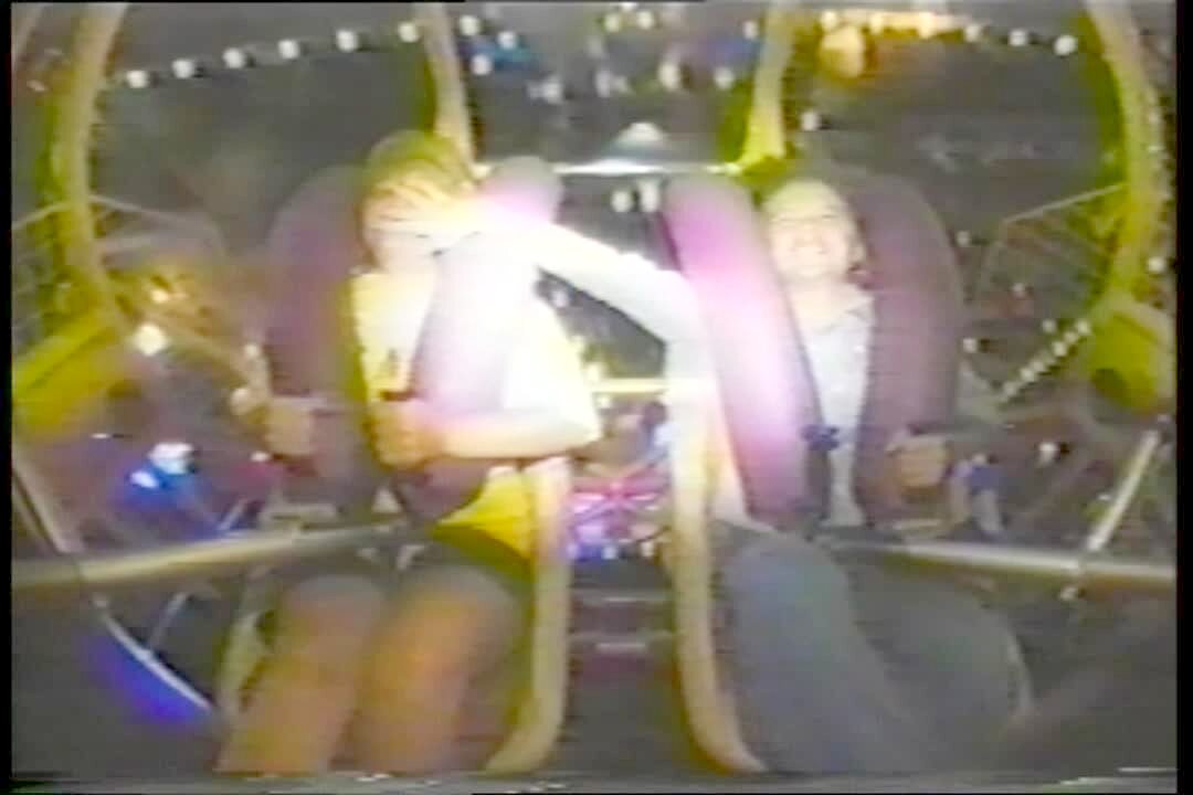 "Passed Out Passenger" Two teen girls ride slingshot ride, girl on left passes out cold (video cuts in and out. download for audio) Faint. Woman. Roller coaster.