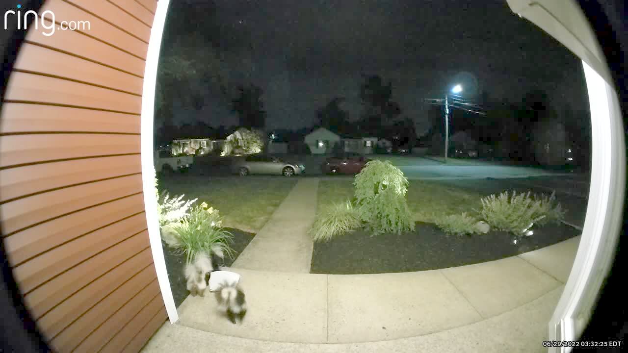A car drives down a street and films Christmas lights on houses and then one house that has "Ditto" written in lights pointing to the overly decorated house next door.