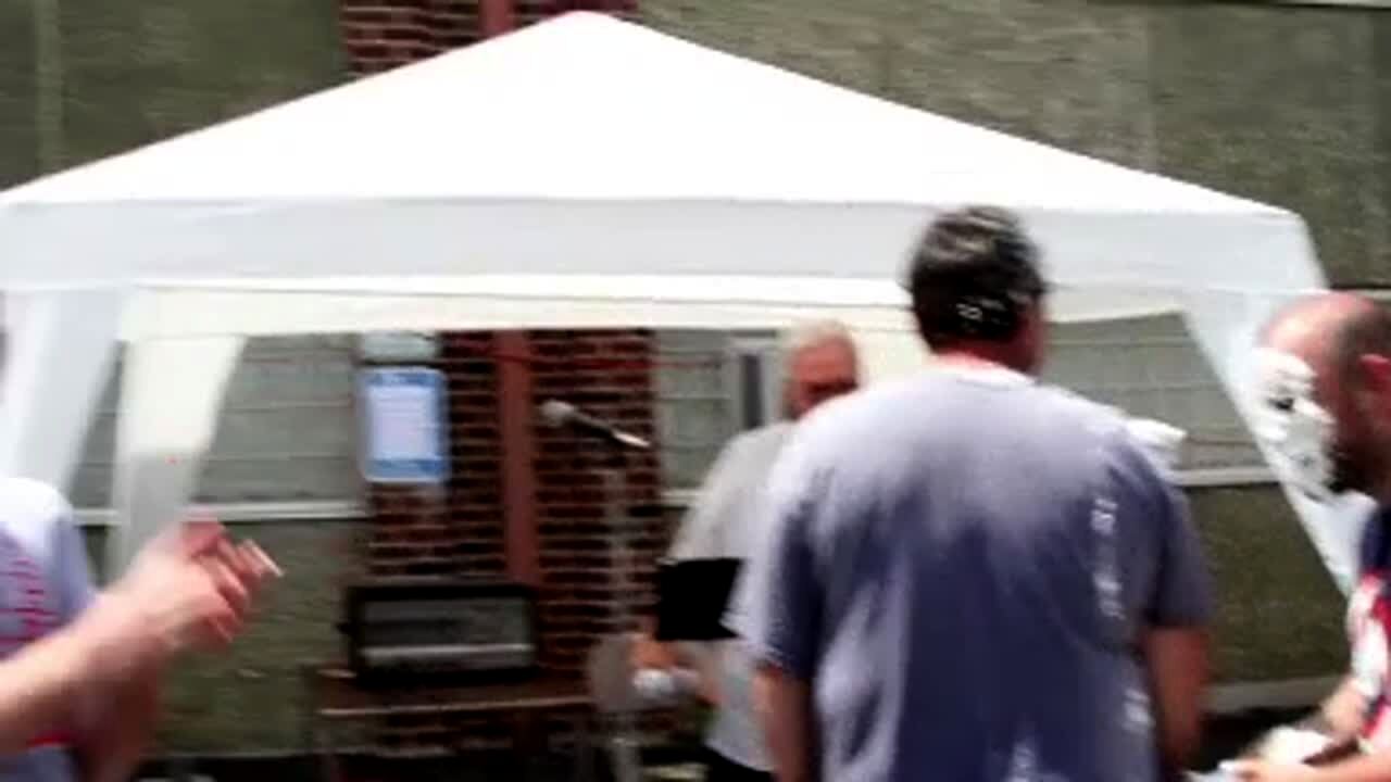 Man gives speech and a cake in front of him explodes. His reaction isn't that good. Prank, practical joke