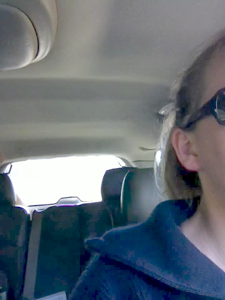 A woman records herself in her car, then she yells "spider" and leans back in her seat.