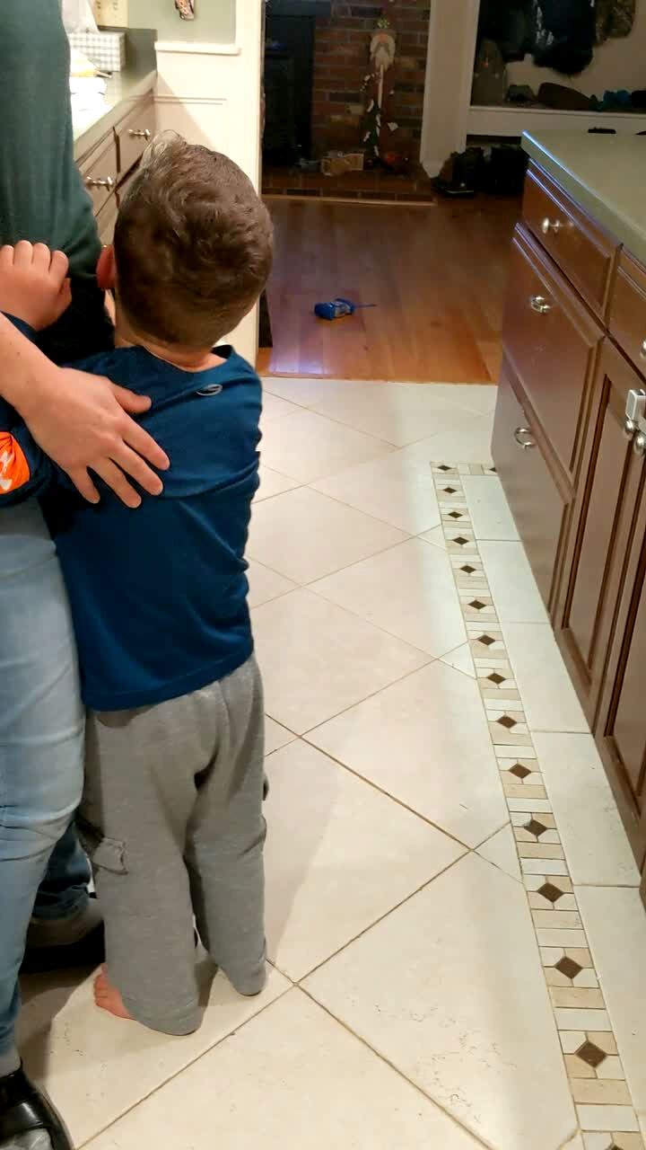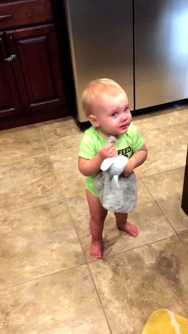 A tot boy screams and cries in the kitchen because AFV is not on the television that Sunday night.