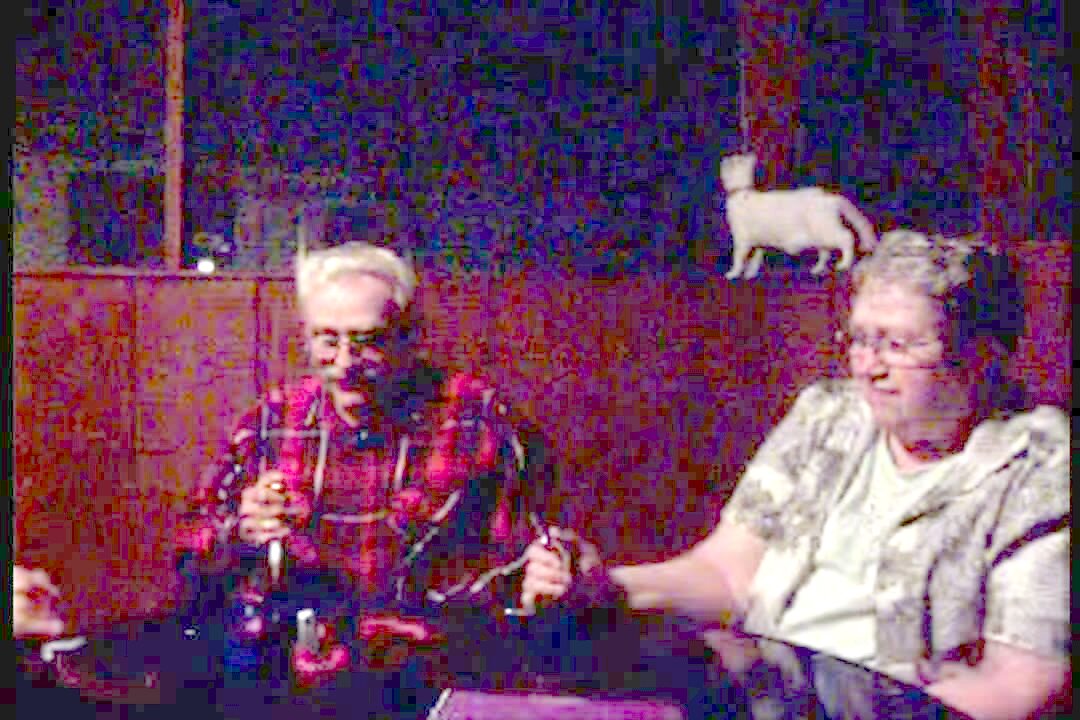 Senior man & woman play a game, grandpa gets shocked. Practical joke.