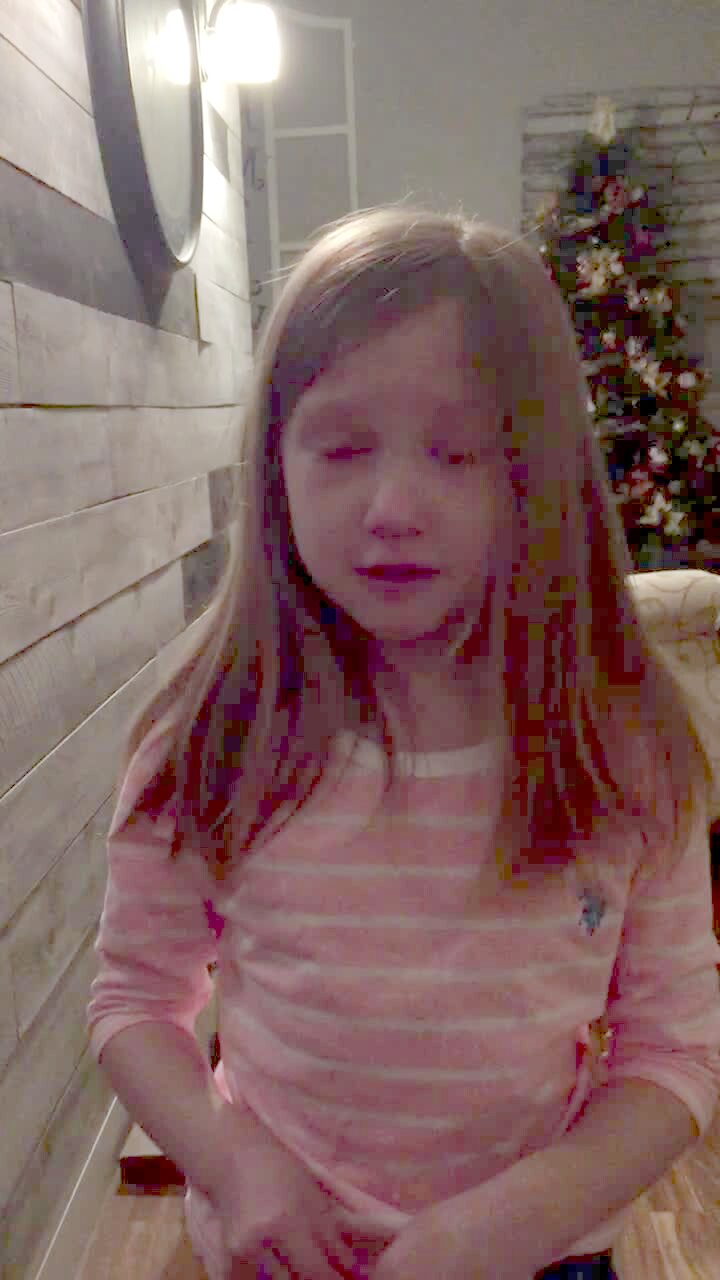 A young girl in a bedroom holds a rock up to her ear and tells her grandmother that she's talking to someone named Ellie on the phone, and Ellie has told her that she is good. Then she stops and says "this is a rock, not a phone."