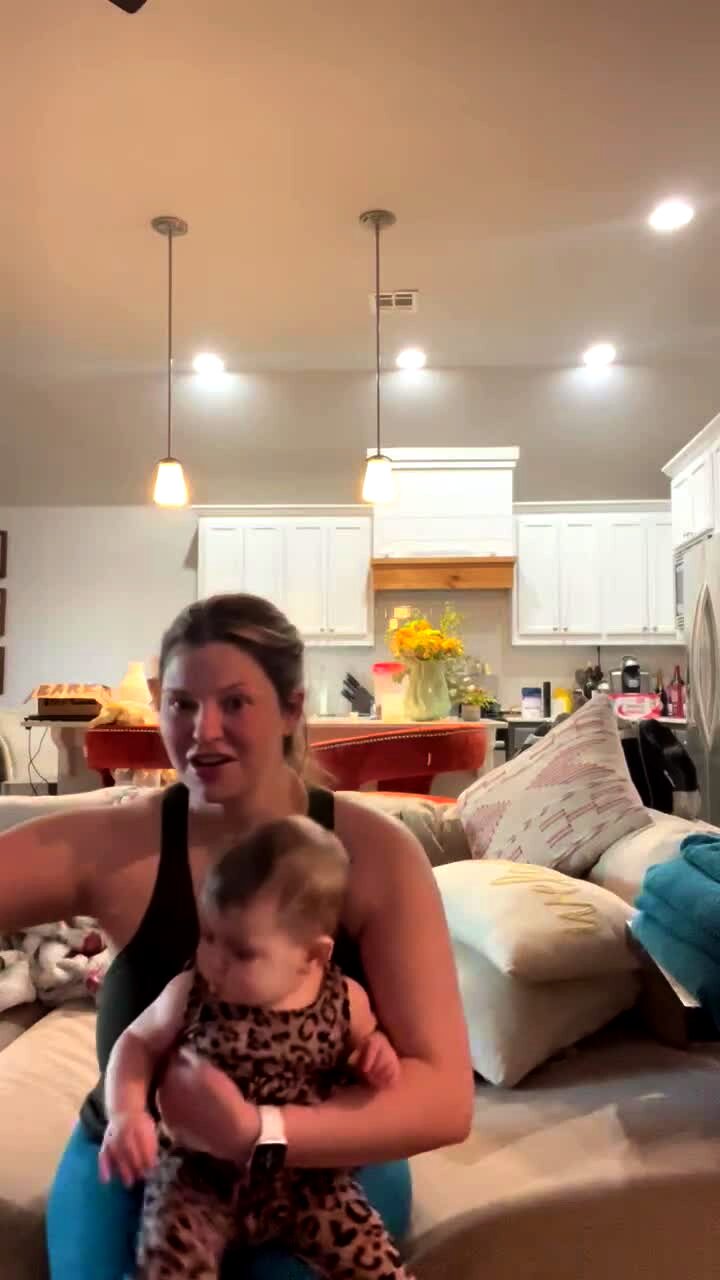 A woman does the what the fluff challenge for a baby in the bedroom and the baby makes a shocked face and looks at the camera.
