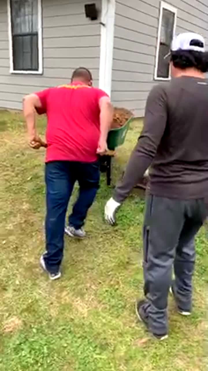 A groom at a wedding reaches in to his pocket and throws his phone in to the bushes while it rings in the middle of the ceremony.