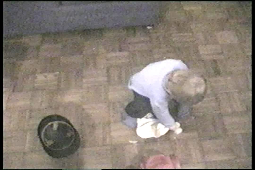 A tot boy removes his pants and throws them into the kitchen trash but misses and finds the pants on the floor after he closes the drawer. He tries and fails again, and on the third time, he gets them in and says "Yay!"