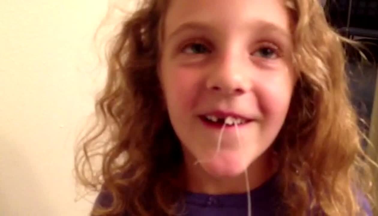 Kid pulls out own tooth with string, has funny reaction