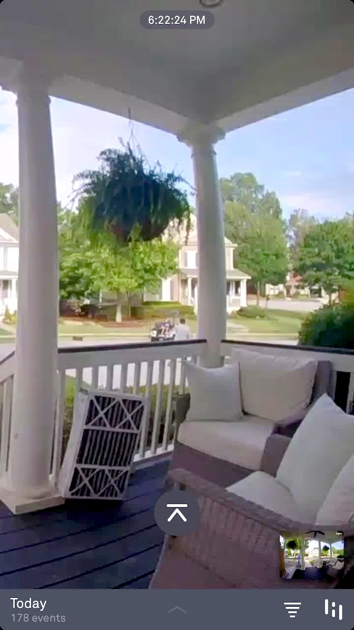 A young boy hits a paddle ball at his father and it hits him in the groin causing him to collapses and fall into the house in pain. Security footage.