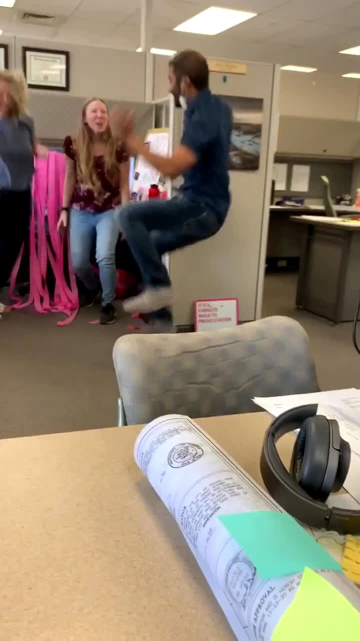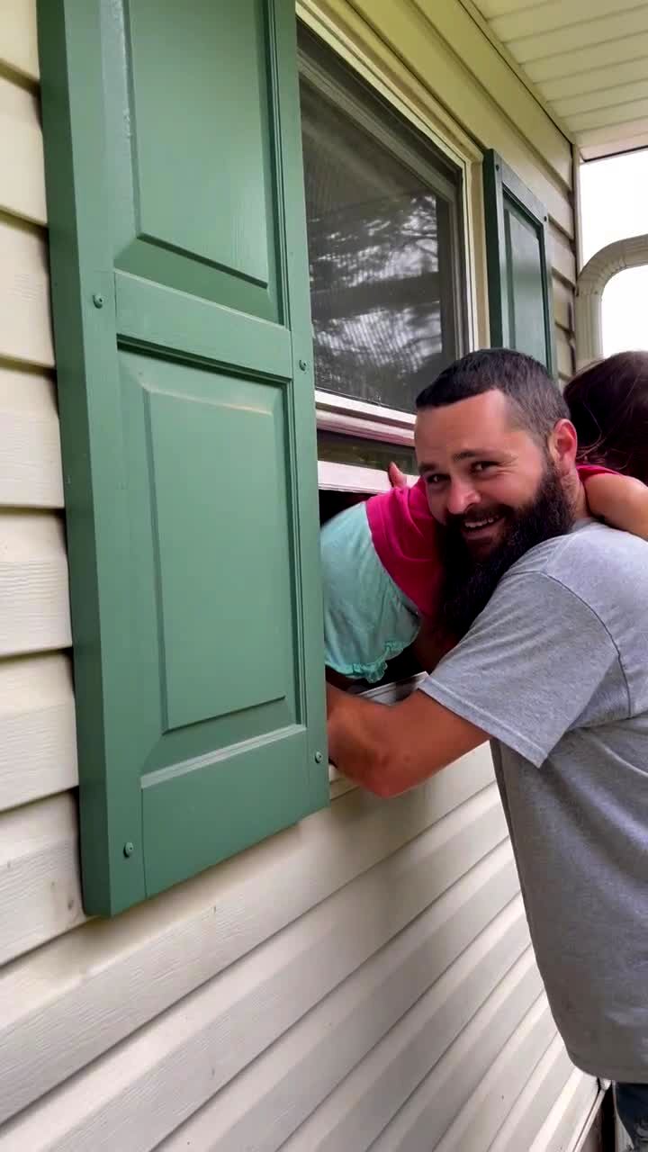 A teen girl screams and cries in the kitchen when a toy spider swings on a string in front of her after she opens a cupboard.