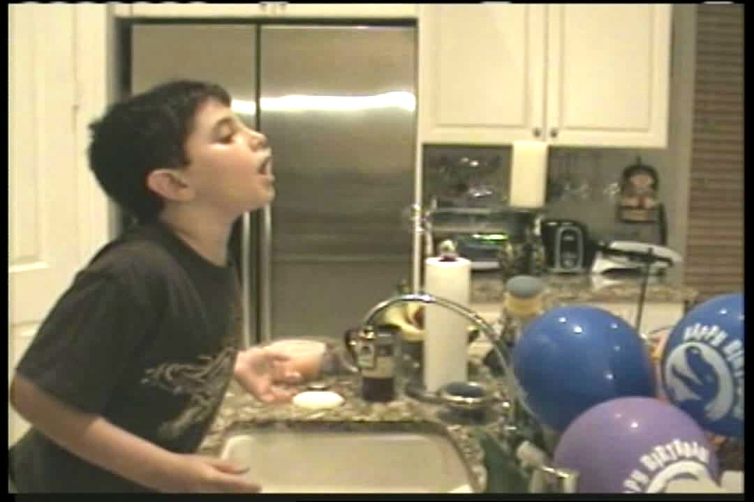 A teen boy rides a dirt bike over a jump in a yard and flies into the air and comes off the bike and falls and lands hard on the ground. The woman with the camera says she could have done better.