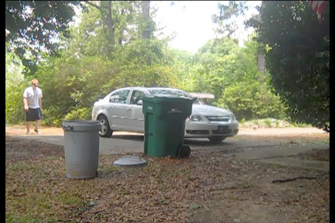 A teen boy on a front porch tries to ding dong ditch a house (where they ring the doorbell and then run away). When he tries to escape undetected, he slips and falls. Security Footage.