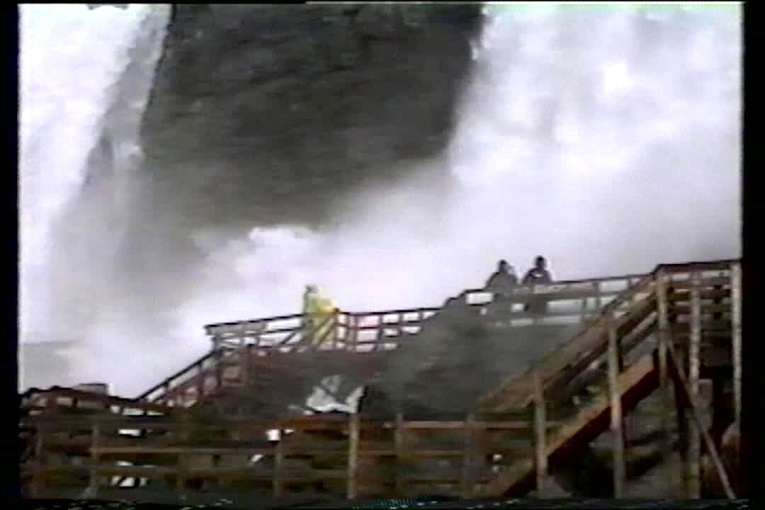 AA: Signs At Niagara Falls, in a downpour, a "No Smoking" sign