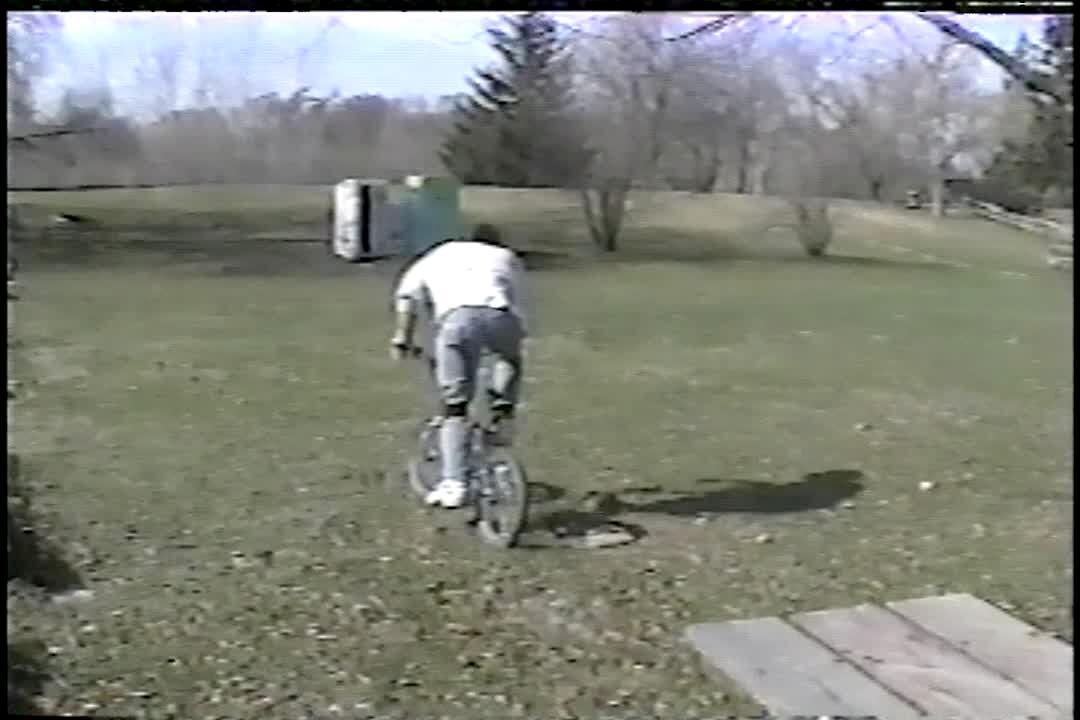 "Bike Yikes" Young boy hits crotch on dirt bike. He falls off into grass and plays dead.