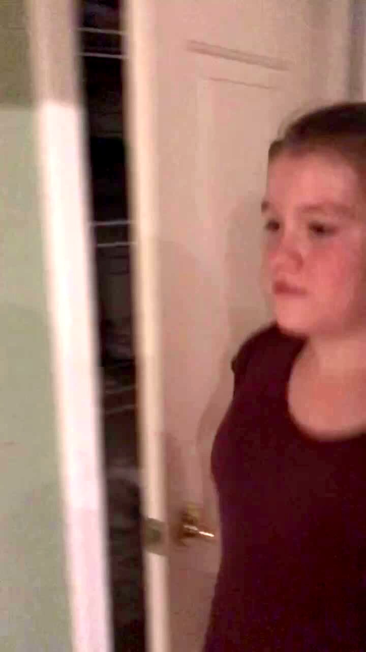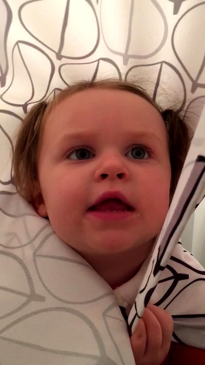 A man does the what the fluff challenge for his kids in the living room and his tot daughter cries when he disappears. She picks up the blanket and looks for him under it.