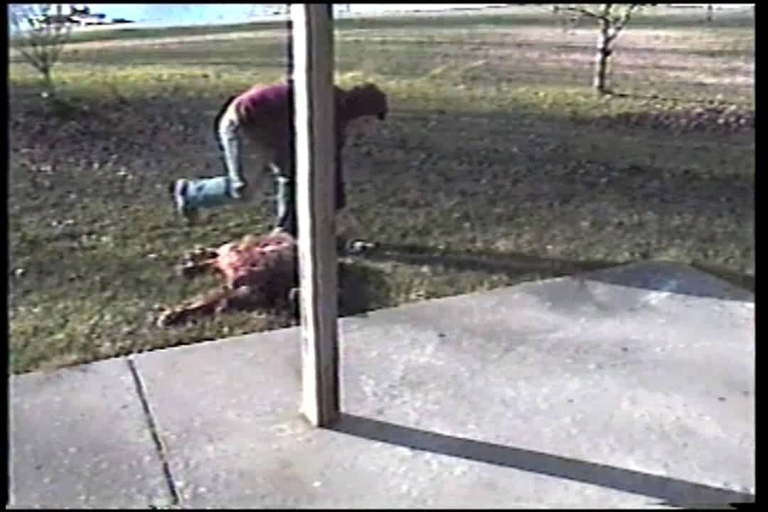 Teen boy & 2 women sit on porch swing for a picture. The bench breaks & they fall.