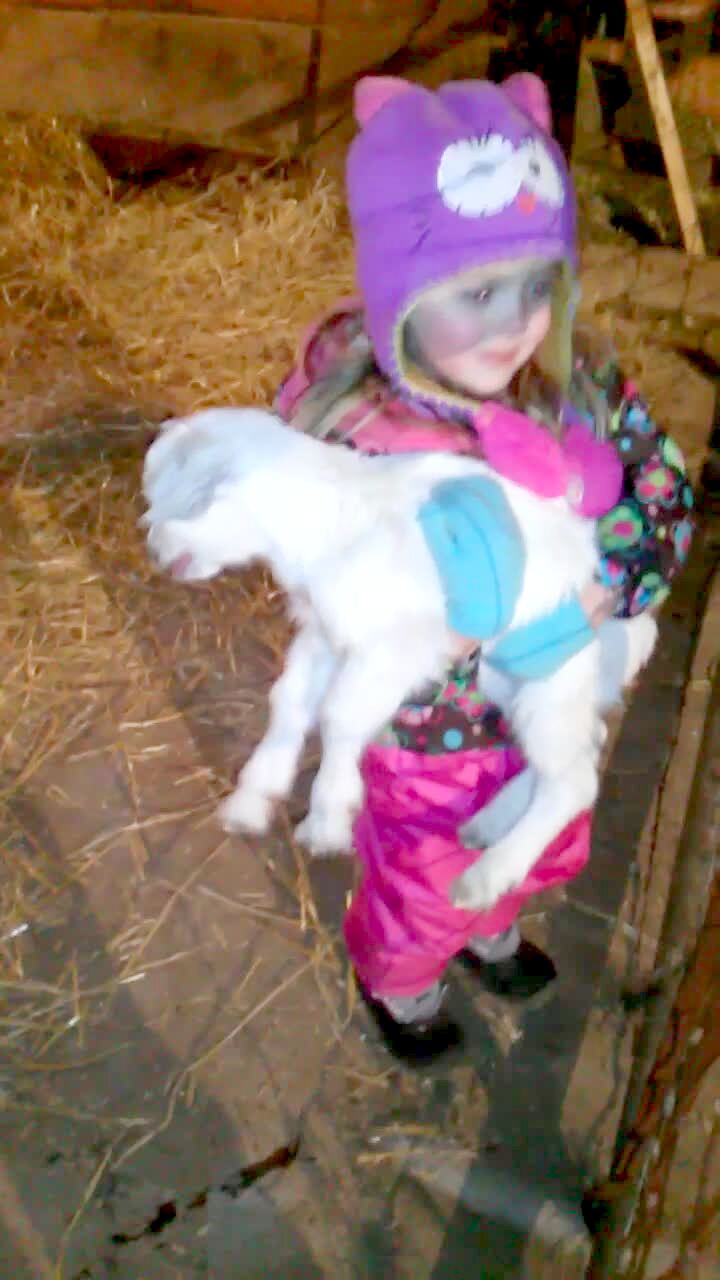 Baby goat screams when it is picked up. Sounds like a human scream.