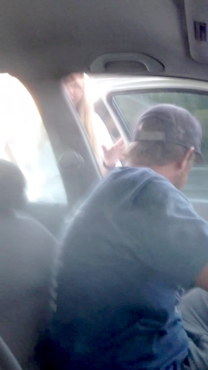 Man scares another couple who are sleeping in the front seat of a van by banging on the window. Practical jokes. Nightshot.