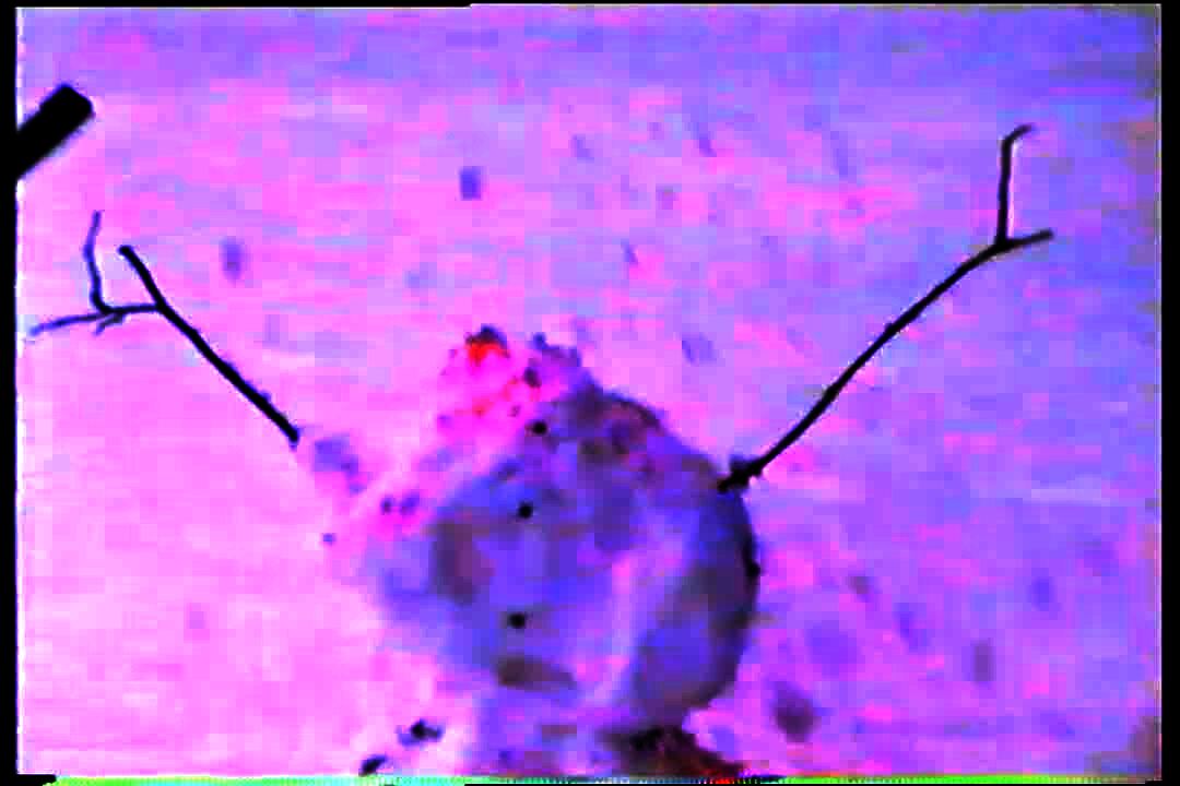 A snowman explodes outdoors.