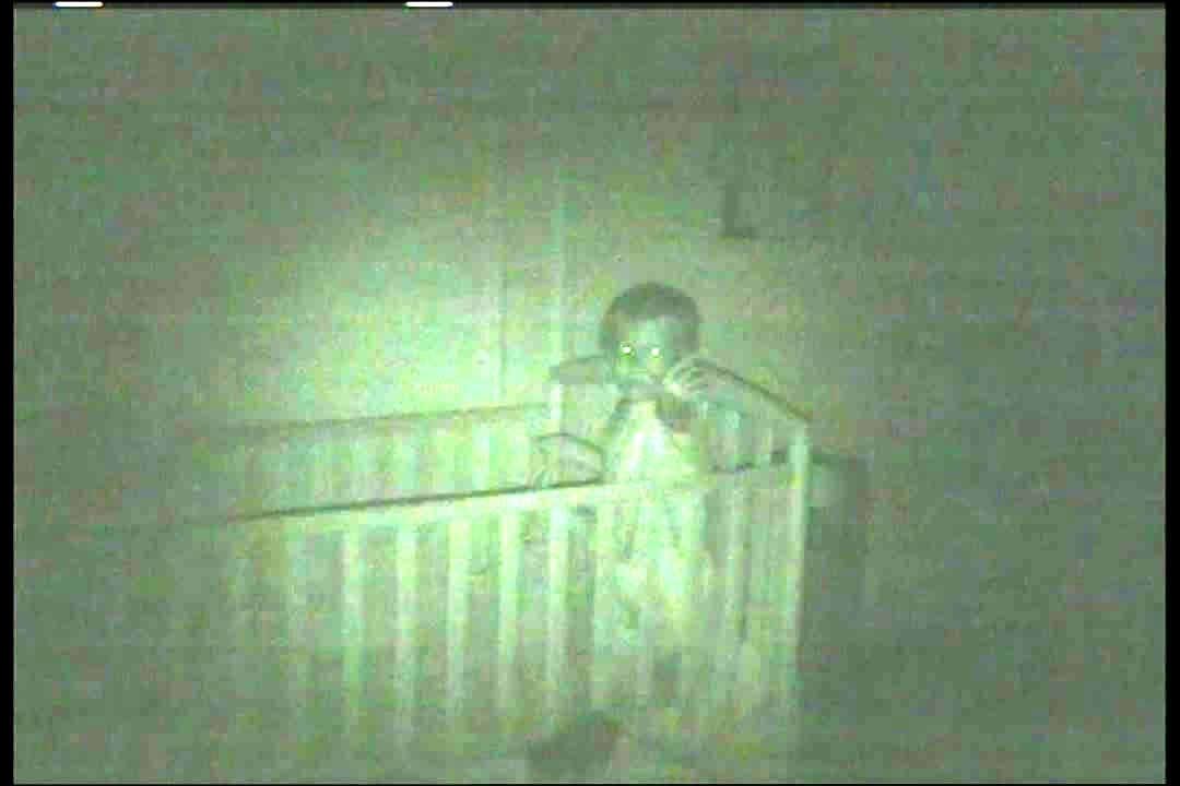 Baby girl in crib looks peacefully at mom (camera), dad burps / belches loudly OC, surprises / scares baby. She starts crying hard.