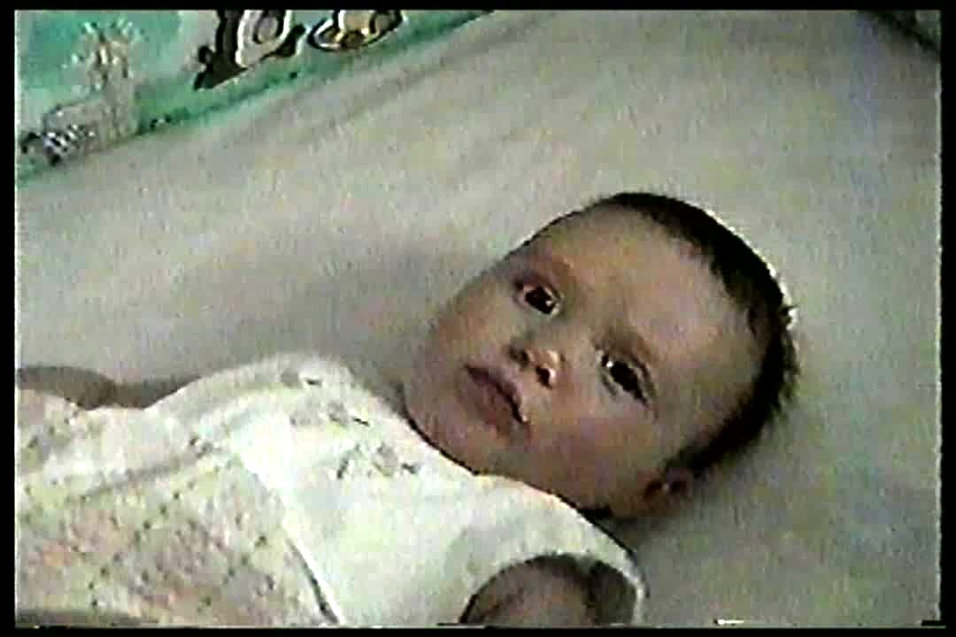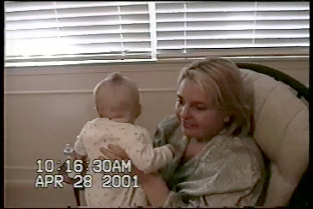 Tot girl cries when she sees a video of her mom and dad shoving wedding cake in each other's faces during their reception.