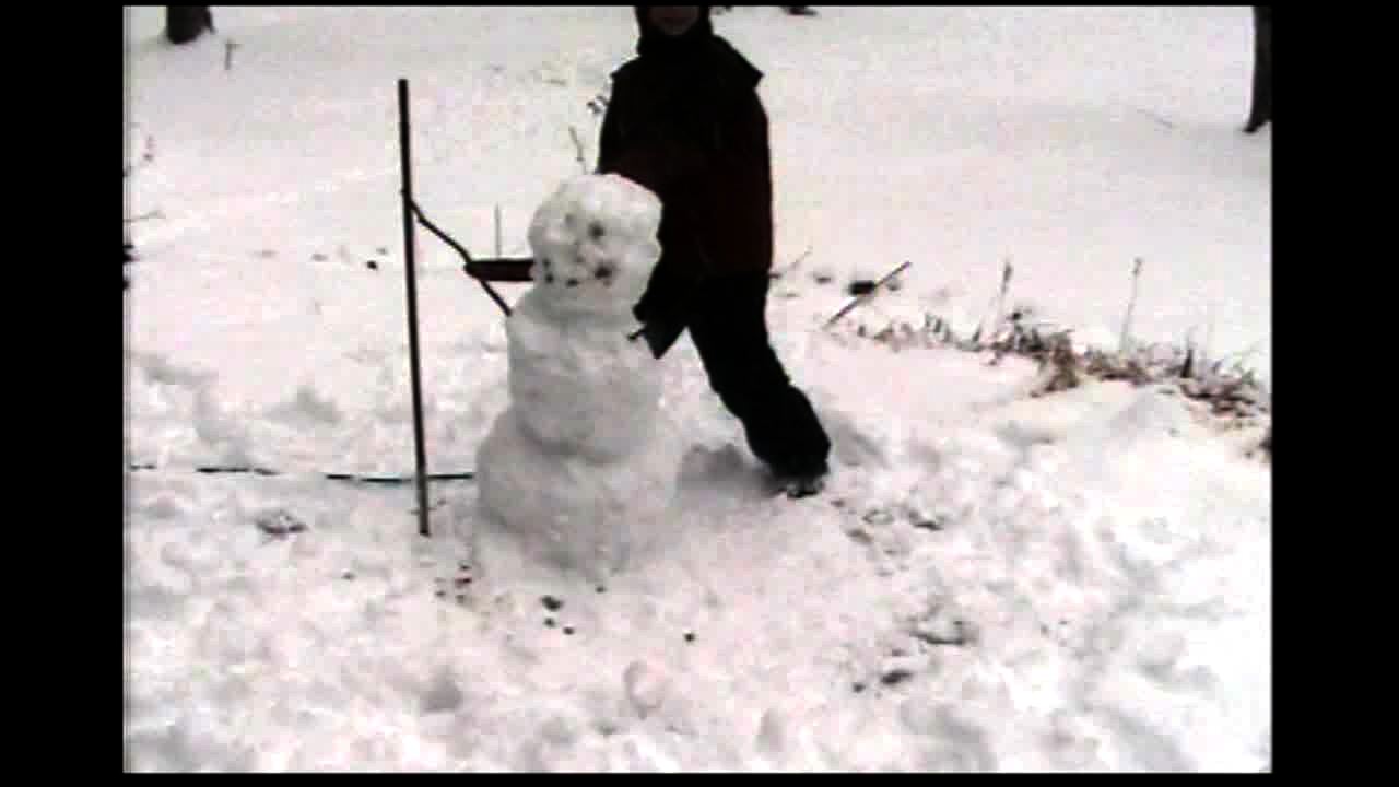 Snow - Kid tries to punch snowman, he misses and falls down
