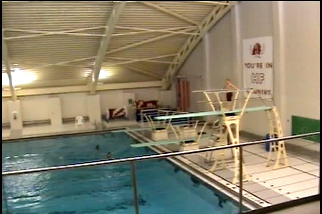 Teen boy slips and falls off high dive at pool. summer. no recovery