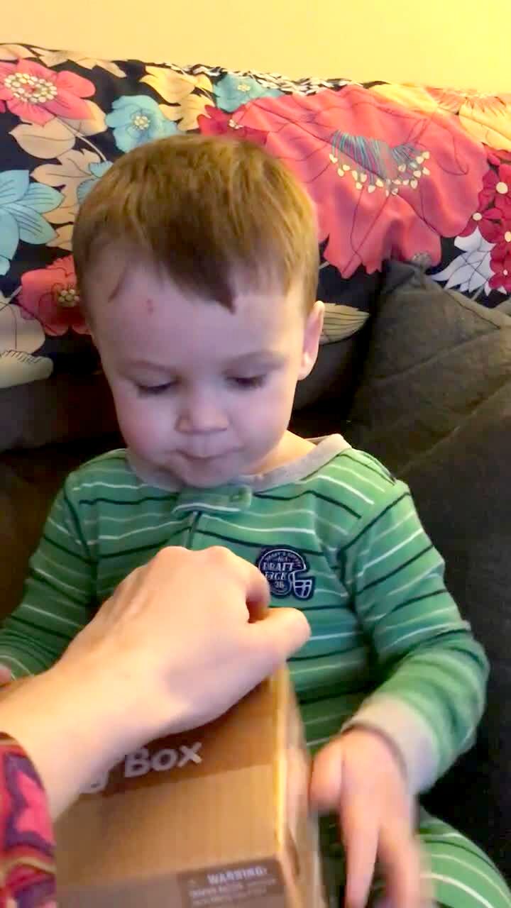 A young girl rolls down a driveway in a stroller then flips over when she hits a fence across the street while her grandma tries to catch up with her. Security footage.