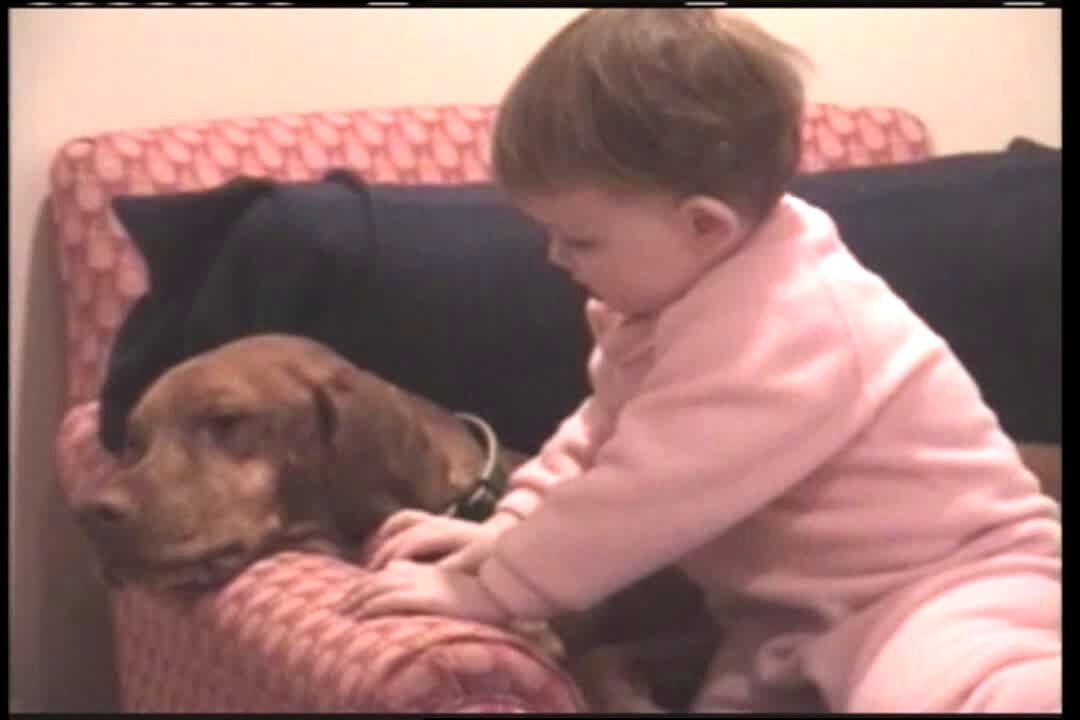 Baby grabs dog's penis and mom screams.