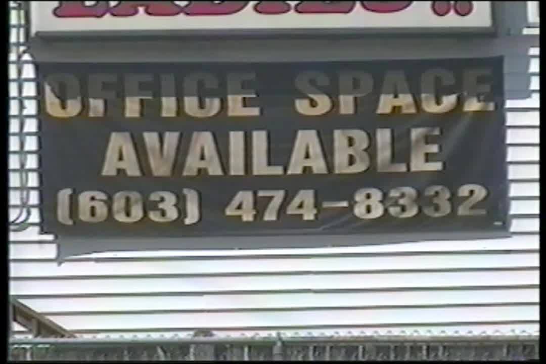 Funny sign: "Office Space Available" sign has "Totally Nude Girls" sign directly above it.