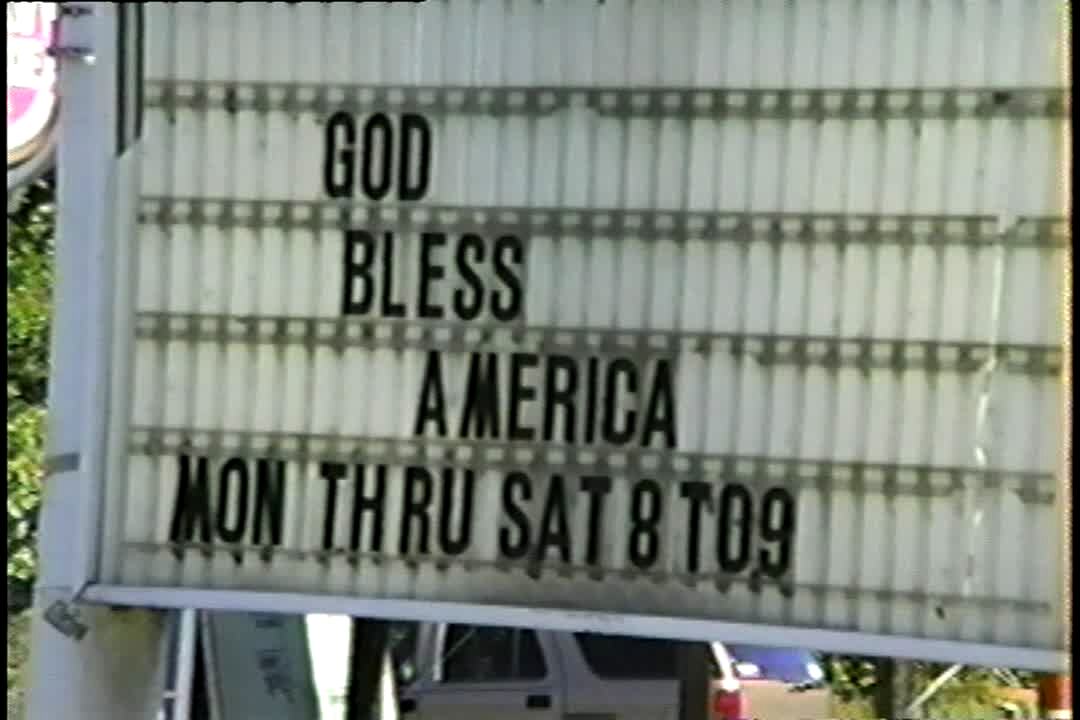 A.A. Funny Signs God Bless America Monday through Saturday 8 to 9