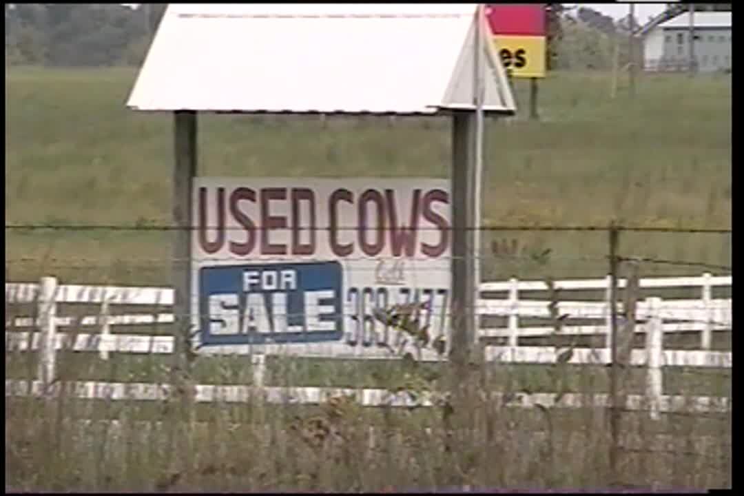 Funny sign: "Used Cows for Sale" on the side of the road in Kentucky.