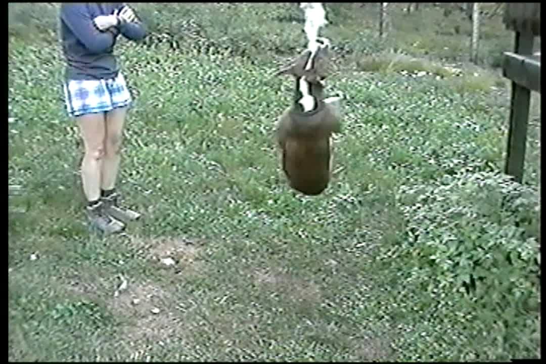 "Freedom Bound Hound" Dog climbs a tree & a fence to escape from his pen outside. Dog is a good climber. Silly pet tricks.