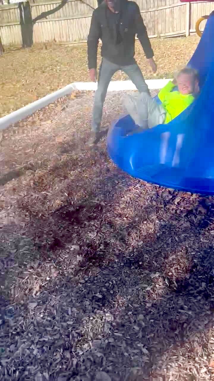 A young boy gets knocked off of a Merry Go Round. He then walks back up to it and attempts to get back on, but a woman's legs knock him over.