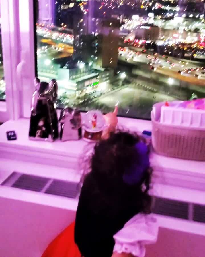 A tot girl points to the Empire State building outside and calls it the "vampire" state building.