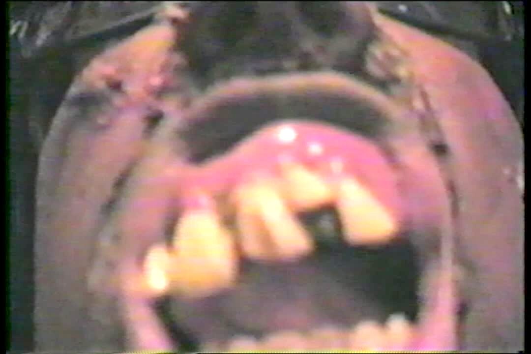 Woman has high pressure air blown in her face and her dentures fall out. Set up but funny visual.