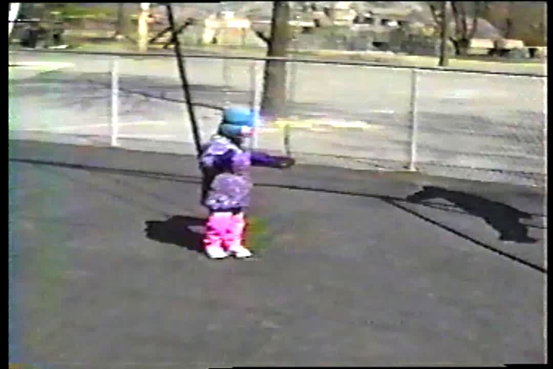 A woman falls when she hangs from a play structure that spins her at a playground park.