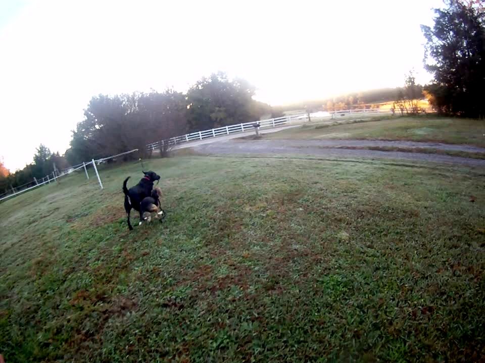 A dog walks into a room. A woman gasps. The dog looks up, alert. The woman gasps again and the dog runs away. Gasp at Your Dog Challenge