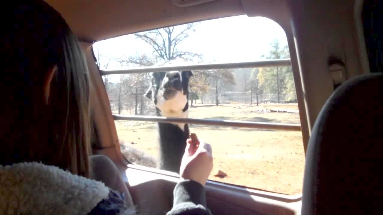 A large mixed-breed dog pulls a woman across the driveway with his leash when he runs to bark at the UPS delivery driver.