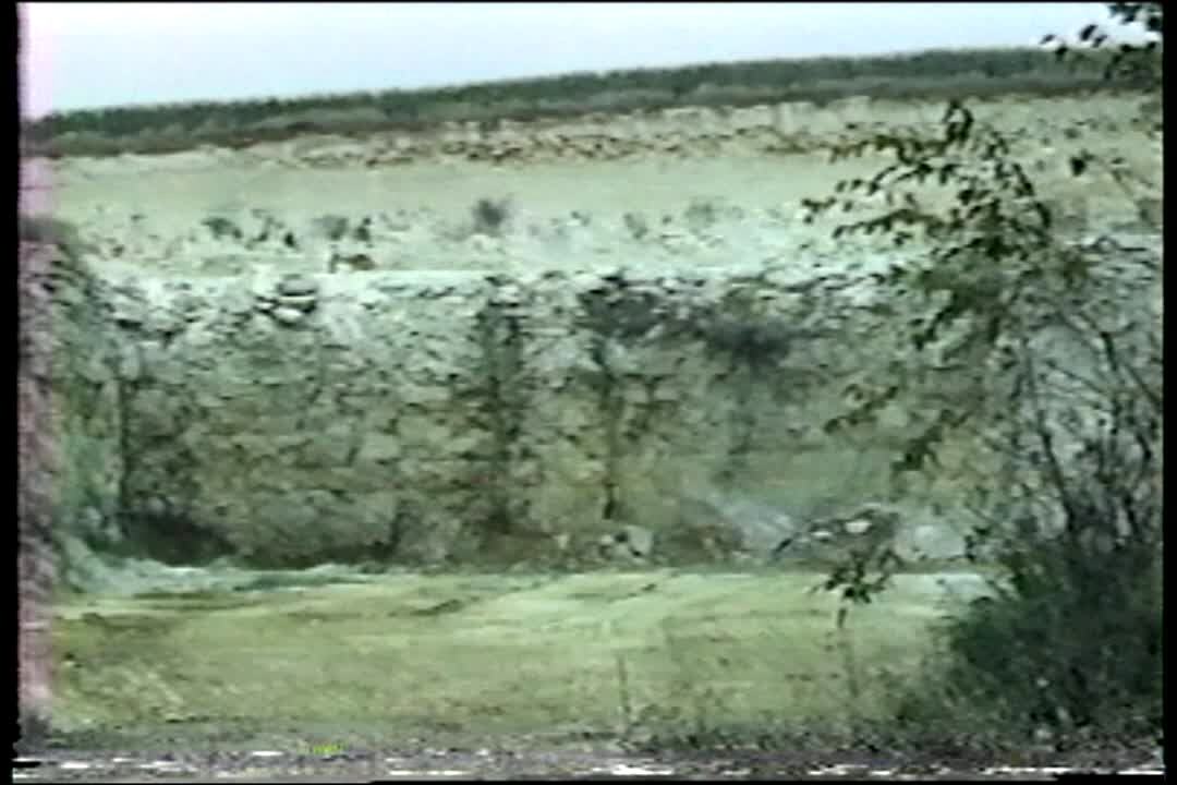 Amazing Explosion. Quarry blast and rock comes right to camera (hits, knocks camera over)