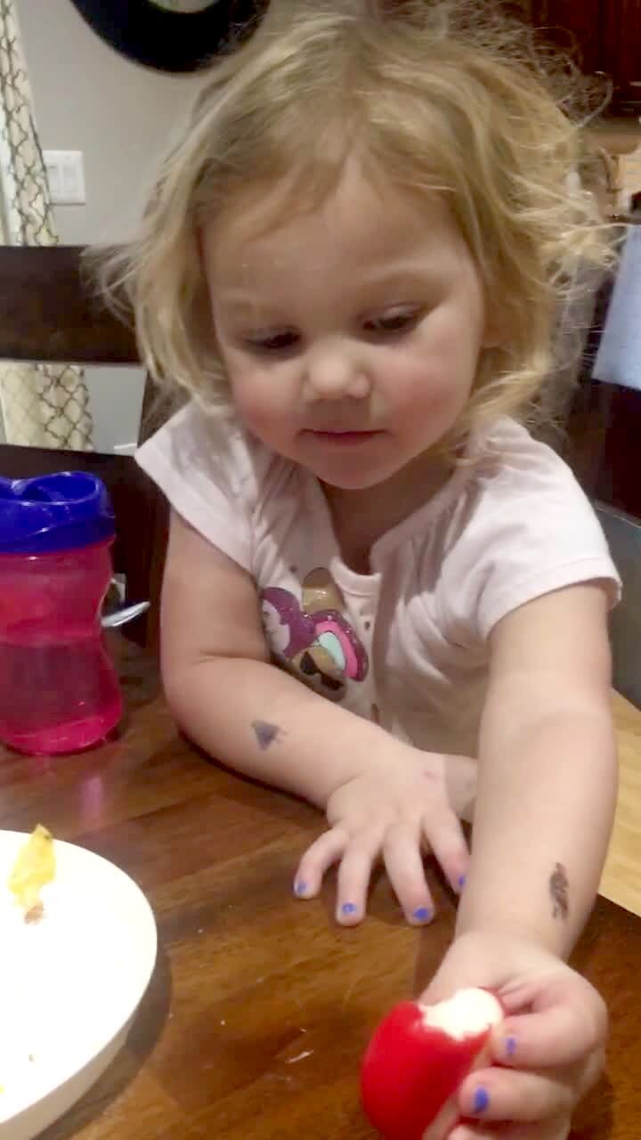 A young girl does the whipped cream trick and calls it her secret talent, but it hits her nose and then her dog jumps up and bites the cream off.