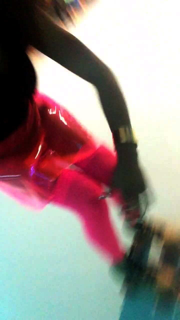 A teen girl records herself dancing while skating in a skating rink and falls.