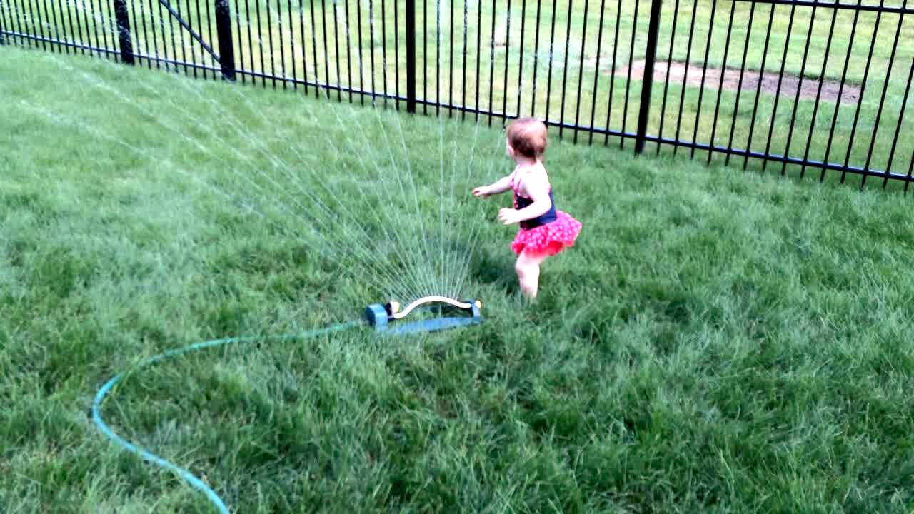 A tot girl pushes her younger sister in a Little Tikes car through a house and crashes her into the couch.