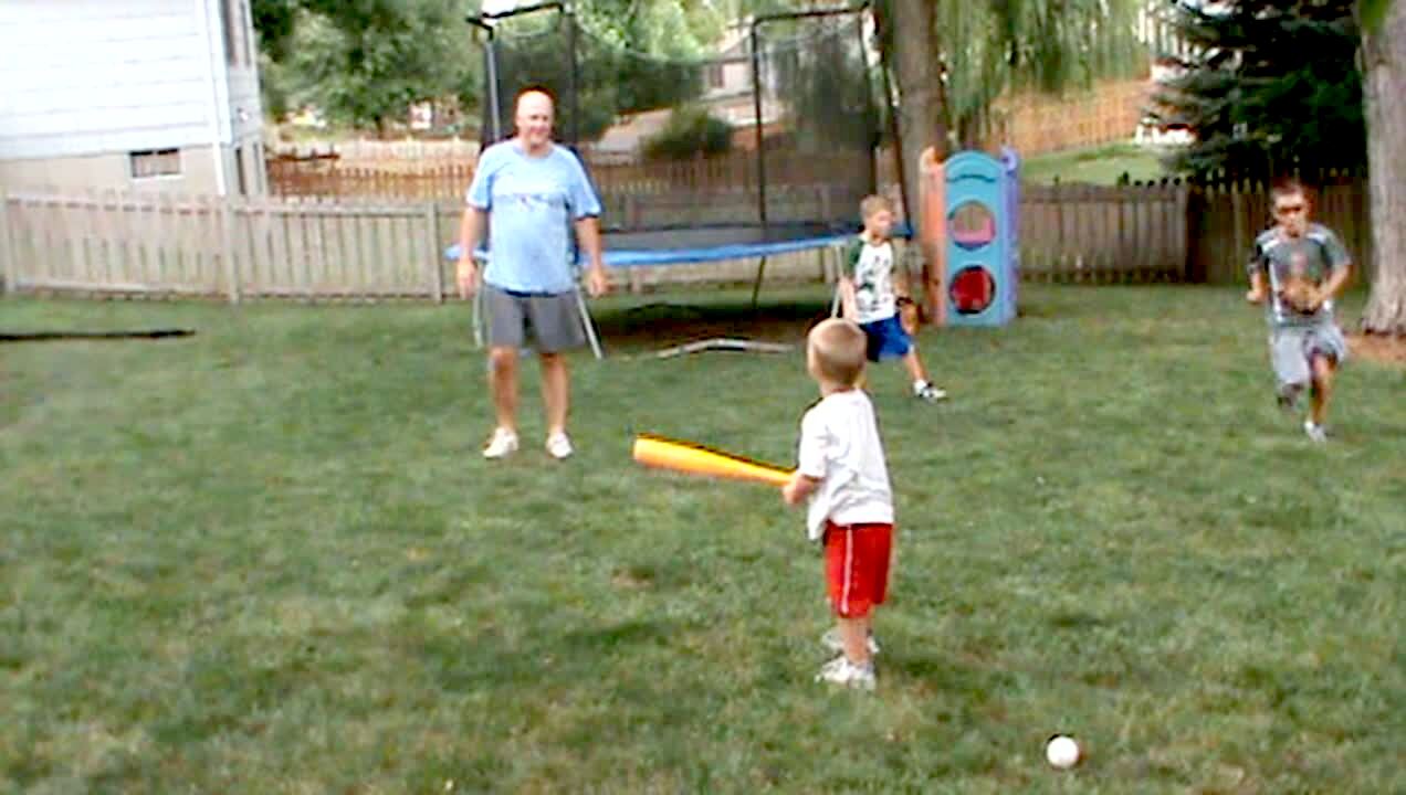 Tot boy hits a baseball into young boy's head. No tail.
