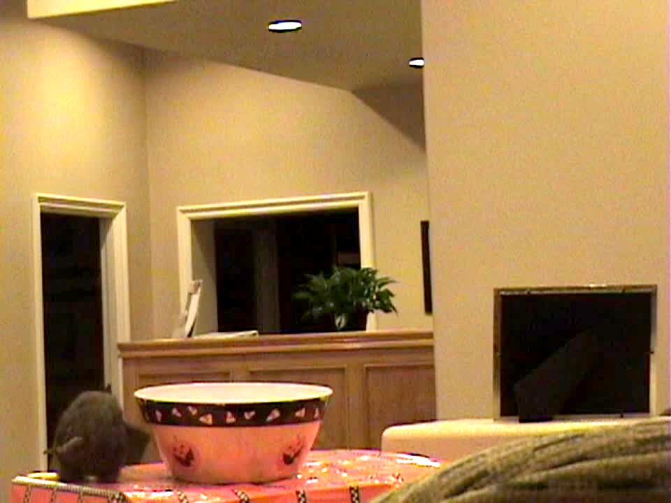 Loud crashes are heard off screen in a kitchen, then a young boy screams as a deer runs around in the house.
